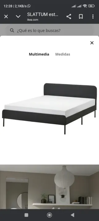 Se vende cama y somier modelo SLATTUM de Ikea, tamaño 140x200 Ya desmontada para su fácil transporte. A recoger, no se hacen envíos. - Estructura de cama tapizada. - Diseño moderno y minimalista.