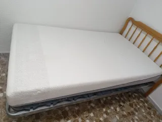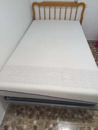 Se vende lote de somier con lamas de madera y colchón espuma de 14 cmts de grosor, totalmente NUEVOS. No ha tenido uso. Solo ha estado de invitados y NUNCA se llegó a usar por reformas y cambio de dormitorio. UNA OFERTA QUE NO PUEDES DEJAR PASAR 😊 - Medidas: 90x1,90 cm.