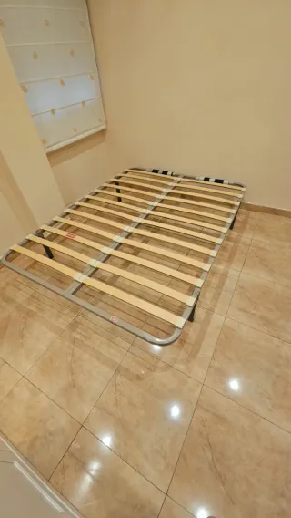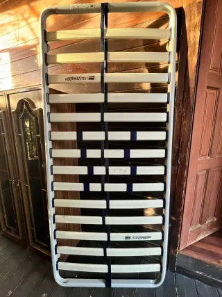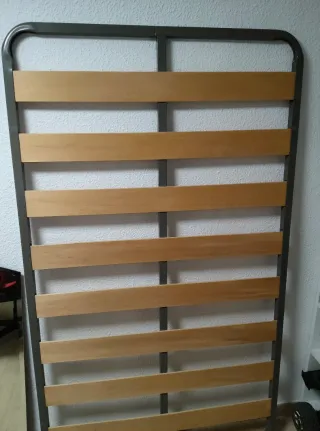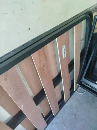 Somier de lamas 90 cm con estructura metálica y láminas de madera. Una a 10€ - los dos a 20€. - Marco exterior de metal. - Láminas de madera para soporte. - Diseño sencillo y funcional.