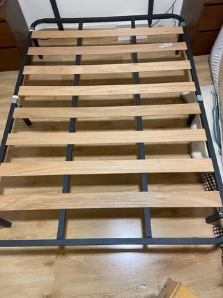 Base de cama de la serie Lycksele de Ikea. Estructura robusta y diseño funcional. - Listones de madera para soporte del colchón. - Marco de metal resistente. Haría más fotos pero lo tengo complicado...