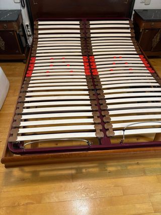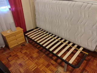 Somier de madera con estructura metálica. - Listones de madera. Regalo un colchón de 1.35 que tengo sin apenas uso.