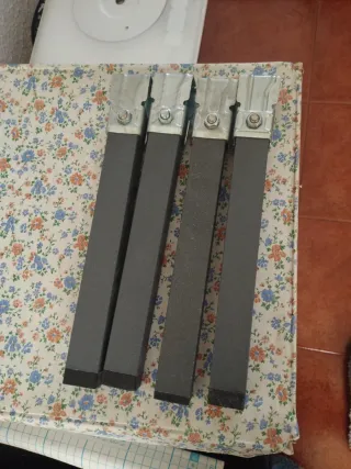 Juego de cuatro patas para somier.3cm x3 cm son cuadradas y de alto 29'5 cm - Fabricadas en metal resistente. - Acabado en color gris. - Base de goma en cada pata.