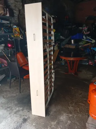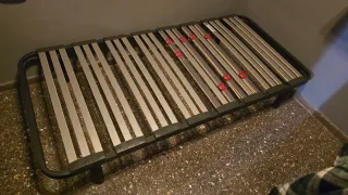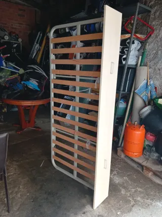 Somier de 90x190 cm con patas abatibles. En muy buen estado, se a usado muy pocas veces. - Estructura metálica. - Láminas de madera.