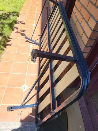 Somier de madera y metal en buen estado. - Estructura resistente. - Listones de madera. - Color azul y marrón.