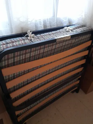 Se vende somier y colchón de 120x190 cm en buen estado. - Estructura de metal y láminas de madera. - Medidas: 120 cm de ancho x 190 cm de largo.