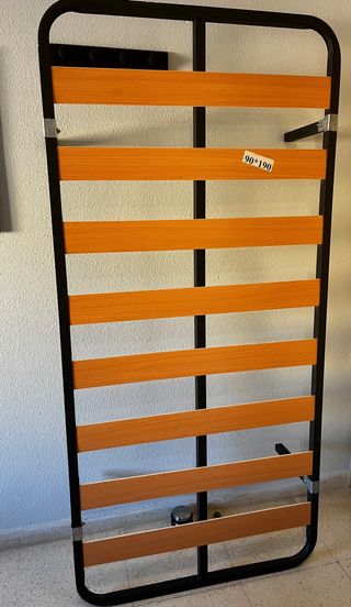 Base de cama tipo canapé con somier de láminas. Ideal para cualquier tipo de colchón. - Medidas: 105 x 190 - Estructura metálica resistente. - Láminas de madera para un soporte óptimo. Se compro pero se ha usado muy poco, esta impecable.