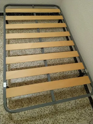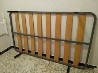 Somier en excelentes condiciones con estructura metálica y láminas de madera. - Marco exterior de metal. - Láminas de madera de haya. Está en perfecto estado, se entrega con las 4 patas.