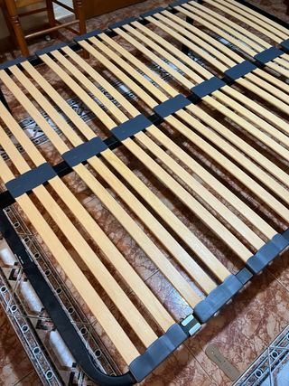 Somier de láminas en perfecto estado, ideal para colchones de 135x180 cm. - Estructura robusta de metal. - Láminas de madera flexibles. - Diseño moderno y funcional.