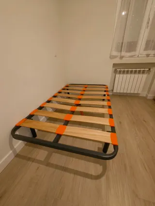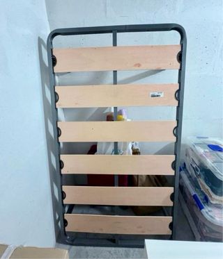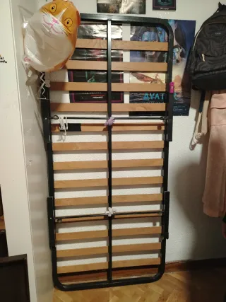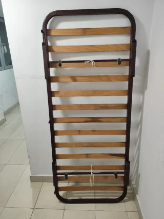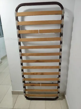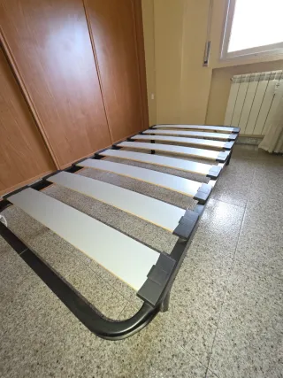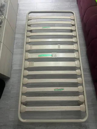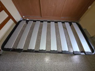 Somier de láminas en buen estado, ideal para colchones de 80x190 cm. - Estructura metálica resistente. - Láminas de madera.