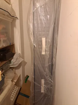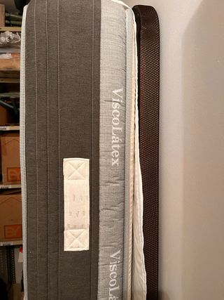 Se vende somier de 90x190 cm y colchón de 105x190 cm. El de 90 no ha sido usado nunca, ha estado almacenado durante un año. El de 105 se va usado durante 1 año. Posible venta por separado. - Somier con estructura metálica y láminas de madera. - Colchón con tejido de alta calidad.