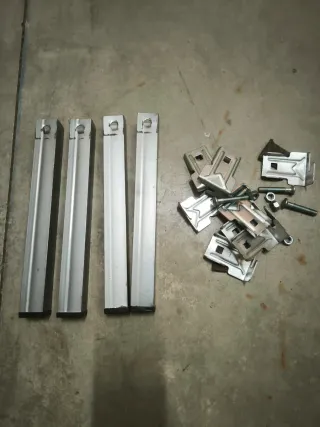 Set de patas metálicas para somier. Incluye soportes y tornillería. - 4 patas metálicas. - Soportes de sujeción. - Tornillos y tuercas. Hago envió. Contesto whatsap.
