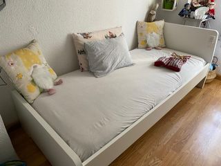 Cama blanca SLÄKT IKEA 90x200 cm con somier.