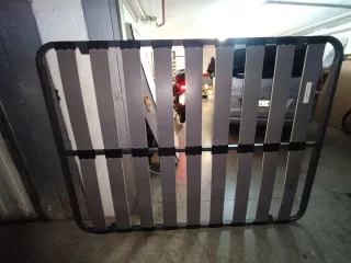 Somier de láminas en buen estado, casi nuevo. Sus medidas son 200 cm de largo por 150 cm de ancho. - Estructura metálica resistente. - Láminas de madera flexibles.