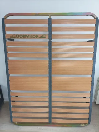 Somier de la marca Dormilon, con una estructura robusta y diseño funcional. - Listones de madera. - Marco de metal.