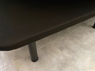 Somier de color negro y gris con patas. - Estructura de metal. - Revestimiento de tela.