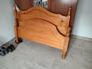 Cabecero, piecero (madera maciza) y largueros de 135 x 180 cm. Se incluye somier y patas del somier también. La madera tiene un bonito acabado. - Perfecta para colchón de 135 x 180 cm. - Listo para montar, incluye tornillería. A recoger en Frechilla.
