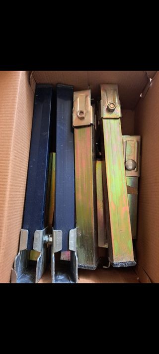 Se venden cinco patas para somier. Son de metal y de color gris. Están en buen estado. - Ideales para camas de diferentes tamaños. - Se venden juntas. - Tienen un acabado liso.