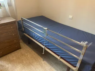 Somier articulado eléctrico con colchón y barandilla. - Estructura metálica. - Colchón biscó elástico