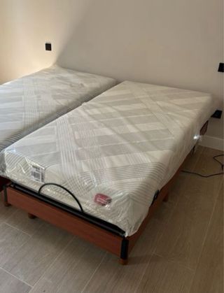 Conjunto de somier articulado eléctrico Smattex y colchón. - Somier con láminas flexibles. - Estructura metálica robusta. - Incluye motor para articulación.