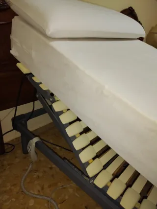 Cama articulada de 90 x 1.90cm con somier de láminas y colchón. - Estructura de madera y metal. - Colchón de espuma. - Somier de láminas.