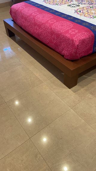 Base tapizada de 200x200 cm, con un año de uso. - Diseño moderno y elegante. - Patas metálicas cromadas.