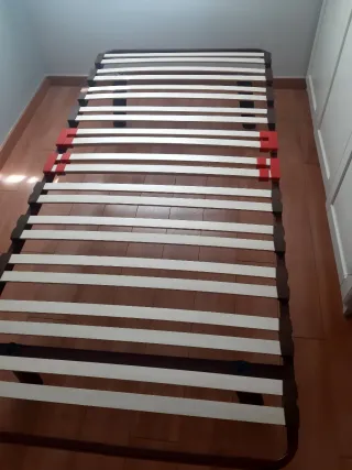 Precio negociable Se vende somier de madera con colchón. - Somier con láminas de madera. - Colchón de tela.