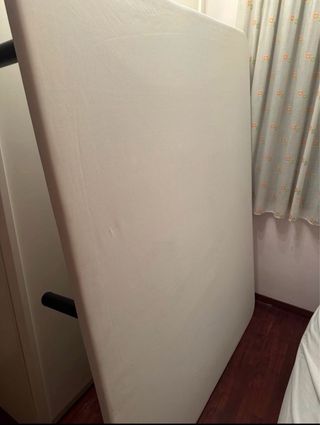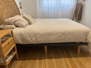 Cama completa, somier de 9 patas para mayor confort, tiene poco tiempo de uso. El colchón esta como nuevo, el somier tiene algunas marcas, pero una vez puesta la ropa de cama no se ve nada.