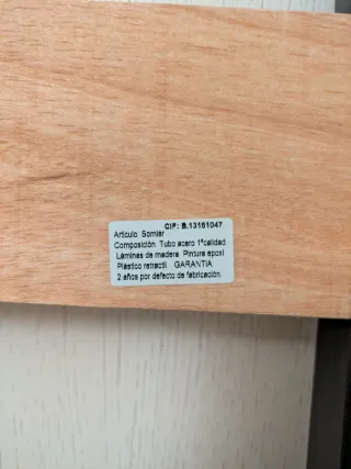 Se vende somier y colchón individual. Se pueden vender por separado. - Estructura del somier de metal. - Láminas de madera.
