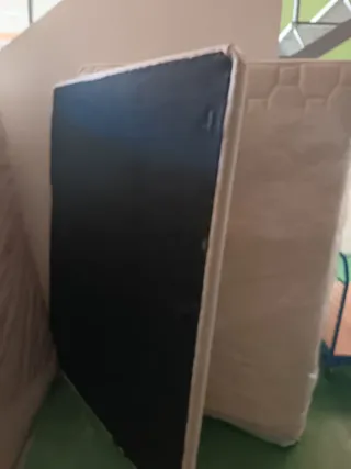 Se vende colchón junto con su base tapizada. - Base tapizada de color negro. - Colchón de color blanco. Precio sesenta euros por las dos cosas también se vende por separado el tapiflex viene con sus patas
