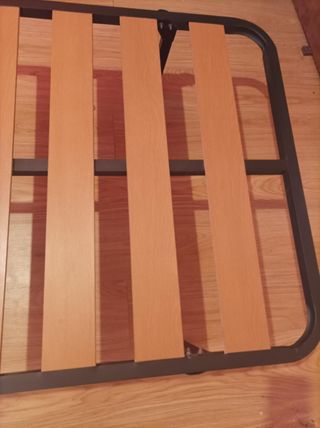 Somier de madera para cama de 150 cm. Estructura robusta y diseño funcional. - Láminas de madera. - Marco de metal. - Algunas partes con el metal levantado