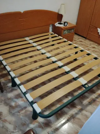 En perfecto estado. Vendo por mudanza. Somier de matrimonio con patas, listo para usar. - Medidas: 150x190 cm. - Estructura metálica. - Láminas de madera.