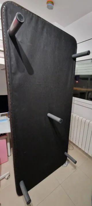 Esta base tapizada está diseñada para ofrecerte un descanso firme, silencioso y con una ventilación constante que ayuda a conservar tu colchón en perfectas condiciones durante más tiempo. - Incluido 7 patas metálicas de 25 cm para somier multiláminas. Fabricadas en tubo acerado y resistentes. - Medidas: 150x190cm Esta en perfecto estado, solo 3 años de uso.