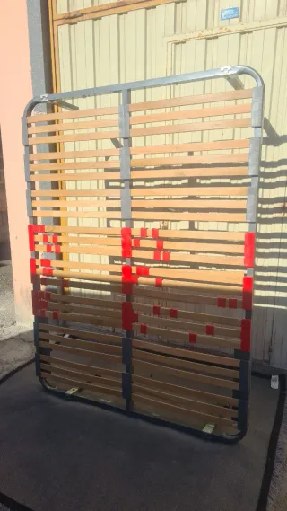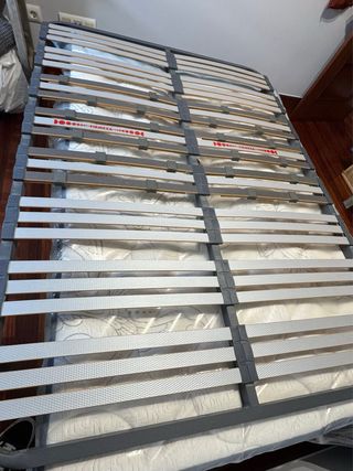 Somier de 135cm en buenas condiciones. - Estructura de metal resistente. - 8 láminas de madera. - Listo para usar. - 135*180 cm. Solo se aceptan recogidas in situ en Reocin.