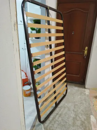 Somier de 105cm en buenas condiciones. Ideal para cama individual. - Estructura de metal resistente. - 6 láminas de madera. - Listo para usar. - 105*180 cm. Solo se aceptan recogidas in situ en Reocin.