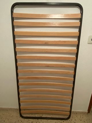 Somier para cama individual de 90 cm. Estructura robusta y diseño funcional. - Láminas de madera. - Marco de metal. Tiene una pequeña ralladura pero no afecta a su uso