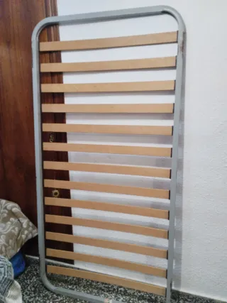 Somier de cama individual. - Estructura metálica. - Láminas de madera. 90 de ancho, 1.90 de largo. Patas 25 cm. Se recoge en la avenida de las cortes valencianas de Valencia, junto al metro Beniferri.