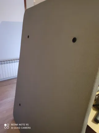 Base tapizada 3D con válvulas de respiración cama de matrimonio, con base aireada, color gris con 6 patas grises. Impecable.muy buena calidad, somier tapizado. - Medidas: 135 x 190 cm.