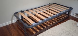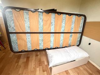 Somier para cama de 90 estructura metálica y de madera 180 cm x90cm se REGALA colchón, almohada y cajón que tiene ruedas. recoger en valladares