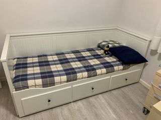 Vendo cama individual de 90x190 cm en muy buen estado, ideal para habitación juvenil, infantil o piso pequeño. - Medidas de 90x190 cm. - Incluye cajones para guardar objetos. - Estructura de madera. Somier incluido. Colchón incluido si interesa.