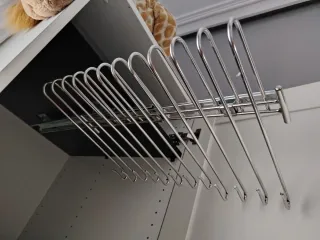 Este pantalonero extraíble es una solución práctica para organizar tu armario. - Diseño deslizante para fácil acceso. - Múltiples barras para colgar pantalones.
