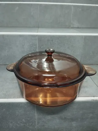 Elegante sopera de cristal en tono ámbar, perfecta para servir tus platos favoritos con estilo. - Diseño clásico con asas. - Tapa con pomo. - Material de vidrio resistente.
