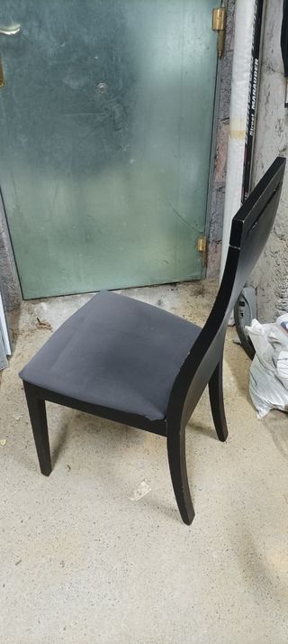 *Sillas elegantes tapizadas en tela AquaClean. - Esta tela es resistente y muy fácil de limpiar, con pasar una bayeta húmeda queda limpia, especial para animales y niños. - Robustas y de muy buena calidad. - Cómodas, asiento amplio y estabilidad. - Medidas: 1m alto x 45cm ancho x 46cm fondo - Habría que darle una mano de pintura a la estructura y ponerles tapas a las patas. - La mesa se vende también en mi perfil y comprando el conjunto completo hago descuento.