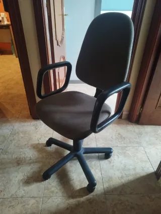 Silla de oficina con un diseño moderno y ergonómico. En buenas condiciones marcas de eso la vendo barato porque me regalaran una nueva por reyes y quiero librar espacio - Respaldo alto. - Reposabrazos. - Base giratoria.