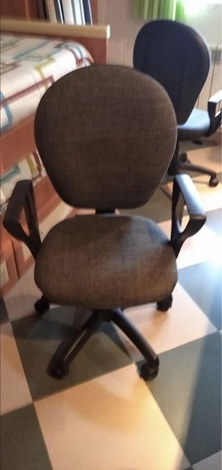 Disponibles 20 sillas de oficina en buen estado. Son giratorias y tienen reposabrazos. Ideales para oficina u hogar. - Estructura metálica. - Asiento y respaldo de tela y cuero sintético. - Ruedas para facilitar el movimiento.