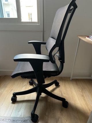 Silla de oficina ergonómica con diseño moderno y funcional. - Respaldo y asiento de malla transpirable. - Altura regulable. - Base giratoria con ruedas.