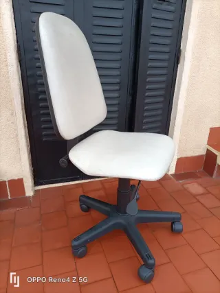 Sillón de oficina giratorio con un diseño moderno y funcional. Su asiento y respaldo acolchados ofrecen comodidad para largas jornadas de trabajo. - Base giratoria de 5 ruedas para fácil movilidad. - Reposabrazos ergonómicos. - Mecanismo de ajuste de altura. Es el modelo de Ikea, precio nuevo 99€ Tela asiento desgastada, se puede poner funda, cojín o tapizar. Muy cómodo y práctico.