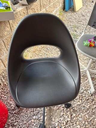 Vendo silla giratoria de IKEA en color blanco, con diseño moderno y líneas suaves. Es un modelo ya descatalogado, muy cómodo y resistente. Incluye base giratoria BALSBERGET (803.086.75) de metal con 4 patas y altura regulable mediante rosca. El asiento es de plástico rígido moldeado, fácil de limpiar y con una forma ergonómica que se adapta bien a la espalda. Tiene una grieta en una de las patas que se aprecia en la foto pero no se aprecia estéticamente y no compromete la estabilidad de la base.