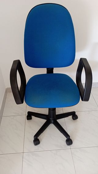 Silla de oficina con diseño ergonómico y base giratoria. En muy buen estado! - Altura regulable - Respaldo regulable - Ruedas para fácil desplazamiento - Tapizado en tela