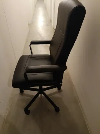 Se vende silla de oficina. Es una silla elegante y cómoda, ideal para el trabajo o el estudio. - Acabado en cuero sintético de gran calidad. - Diseño moderno y sofisticado. - Respaldo acolchado para mayor comodidad. Precio negociable, precio en Ikea 59€