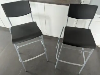 Conjunto de dos taburetes altos de la marca Ikea - Estructura metálica. - Asiento y respaldo en color negro.